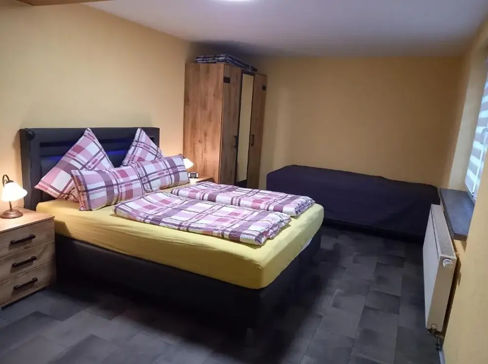 معلومات إضافية عن Ferienwohnung Am Waldتقدم Ferienwohnung Bradatsch في Catterfeld شقة من غرفة نوم واحدة تتضمن مساحة معيشة مريحة، حديقة، واي فاي مجاني في المناطق المشتركة، وموقف سيارات خاص مجاني. تحتوي الشقة على مطبخ صغير مع آلة قهوة، ثلاجة، فرن، موقد، محمصة، غلاية كهربائية وتلفزيون. تتميز أيضًا بمجفف شعر وسرير أريكة.