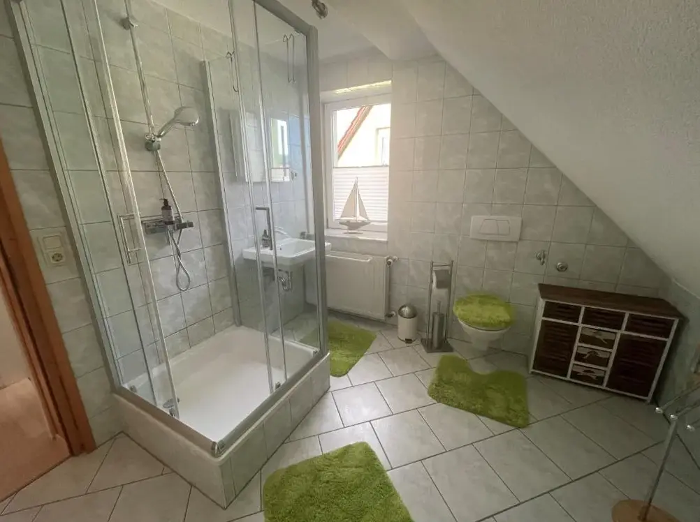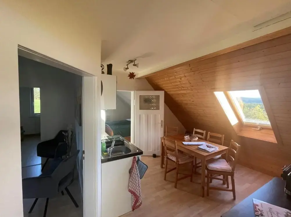تقدم Ferienwohnung im Thüringer Wald في Georgenthal شقة واسعة تتكون من غرفتين نوم وغرفة معيشة، وتتميز بتصميم عصري مع أرضيات باركيه ومدخل خاص. تحتوي الشقة على مطبخ مجهز بالكامل يضم ثلاجة وفرن موقد وميكروويف بالإضافة إلى مرافق الشواء والمعدات اللازمة لإعداد المشروبات مثل الشاي والقهوة. تُوفر المساحة الخارجية حديقة ومنطقة جلوس خارجية بإطلالة على المناظر الطبيعية الخلابة للجبال.