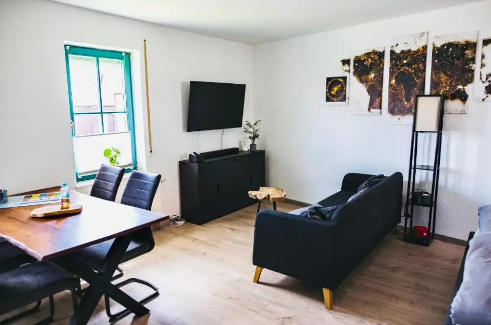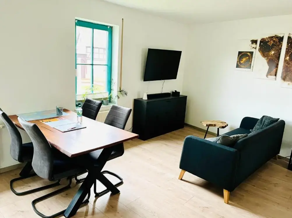 关于 Ferienwohnung Panorama 的更多信息位于德国霍尔茨豪森(Holzhausen)的Das Chorzimmer,坐落在城堡脚下,周边环境安静宜人,是一个精心布置、舒适实用的度假公寓。房间内设施齐全,包括功能性厨房、宽敞明亮的餐饮区和带大屏幕电视的休息空间,床铺后配有双人沙发床,窗户均装有卷帘和防虫网。卫生间采光良好,提供现代淋浴间及独立洗手台,并附带集成烘干功能的洗衣机。入住时可通过密码锁自助取钥匙,无需额外等待接待。客房还备有储物柜存放日常用品如纸巾、毛巾等生活必需品。邻里氛围友善,停车方便——私家车辆可直接停靠门前专属泊位。距离当地特色餐馆仅200米步行即达,Brandopfer酒店(5公里)、Veste Wachsenburg古堡(800米)和多条通往伊拉斯弗特(Erfurt)、哥塔(Gotha)或图林根山谷(Thüringer Wald)的高速出口也都在附近范围内。无论是短途游览还是深度探索德意志文化遗迹,这里都是个理