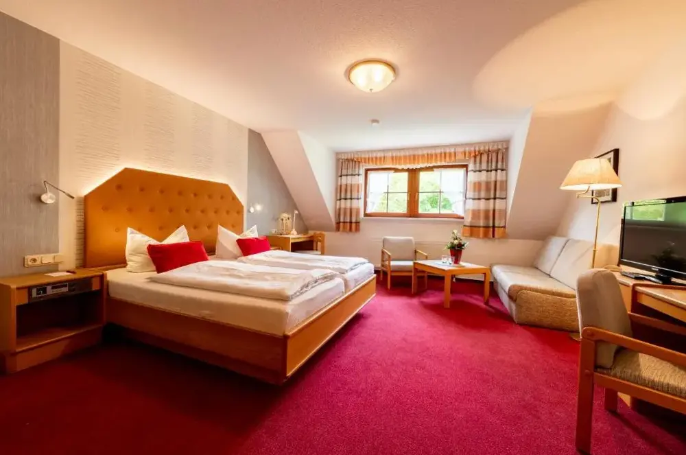 Hotel & Restaurant Lengefelder Warte i Anrode tilbyder komfortable værelser med private badeværelser, balkoner og gratis wifi. Værelserne inkluderer et arbejdsbord, opholdsområde, tv og gratis toiletpapir. Restauranten serverer tysk køkken til frokost og middag i en hyggelig atmosfære med udvalgte drikkevarer.