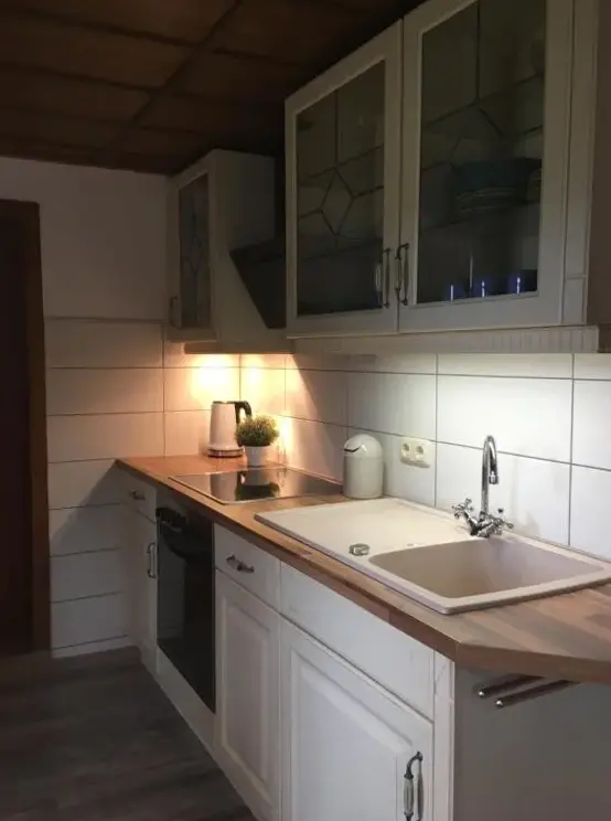 B&B Talstation Ferienwohnung i 16 Langgasse, Hörselberg-Hainich, erbyder et moderne og veludstyret ferieophold til to personer med fokus på komfort og afslapning. Lejligheden er nyindrettet og udstyret med alt hvad der kræves for at gøre opholdet behageligt, herunder kaffemaskine, teklokke samt en velkomstflaske med vand fra vandet.