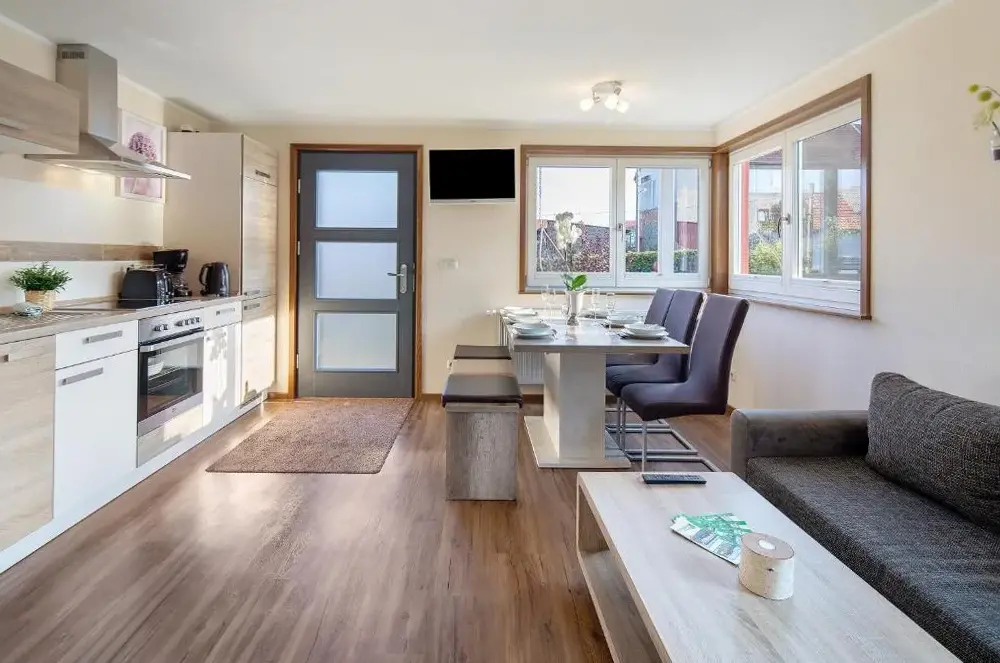 Mere information om Ferienhäuser am HainichHainich-Ferienwohnung er en komfortabel et-værelsesbolig med stue, ideelt placeret i Hörselberg-Hainich. Lejligheden tilbyder en balkon med udsigt over haven, et fuldt udstyret teknisk køkken og en spiseplads. Derudover findes både en have og udendørs opholdsområder, hvor man kan nyde grilling.