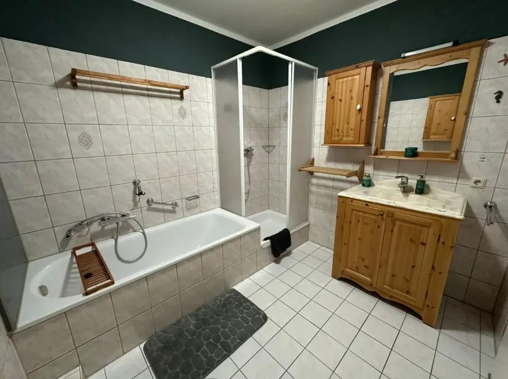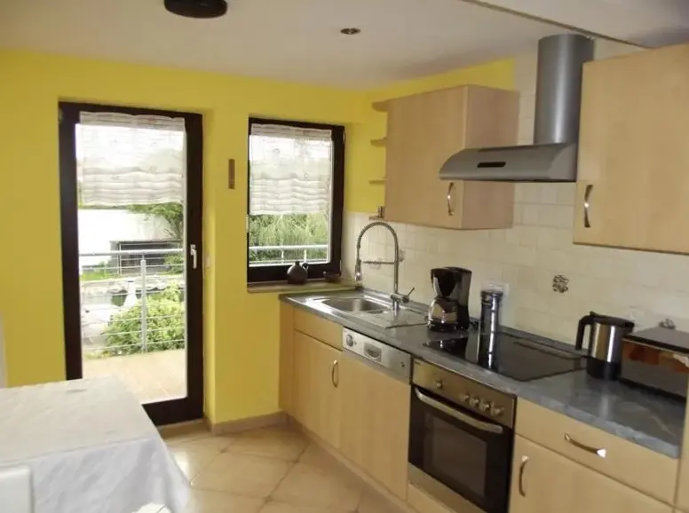 Mere information om B&B Talstation Ferienwohnung für 2 PersonenHörselberg Apartment er en rummelig bolig i Rosenweg 4, 99820 Hörselberg-Hainich, som tilbyder to soveværelser og to badeværelser. Stuen har stor plads til afslapning, mens balkonen giver udsigt over haven og bjergene. Der er gratis wifi, et fuldt udstyret køkkel samt en vaskemaskine. Boligen omfatter yderligere faciliteter som streamingtjenester, et arbejdsskrivebord og gratis toiletpapir.