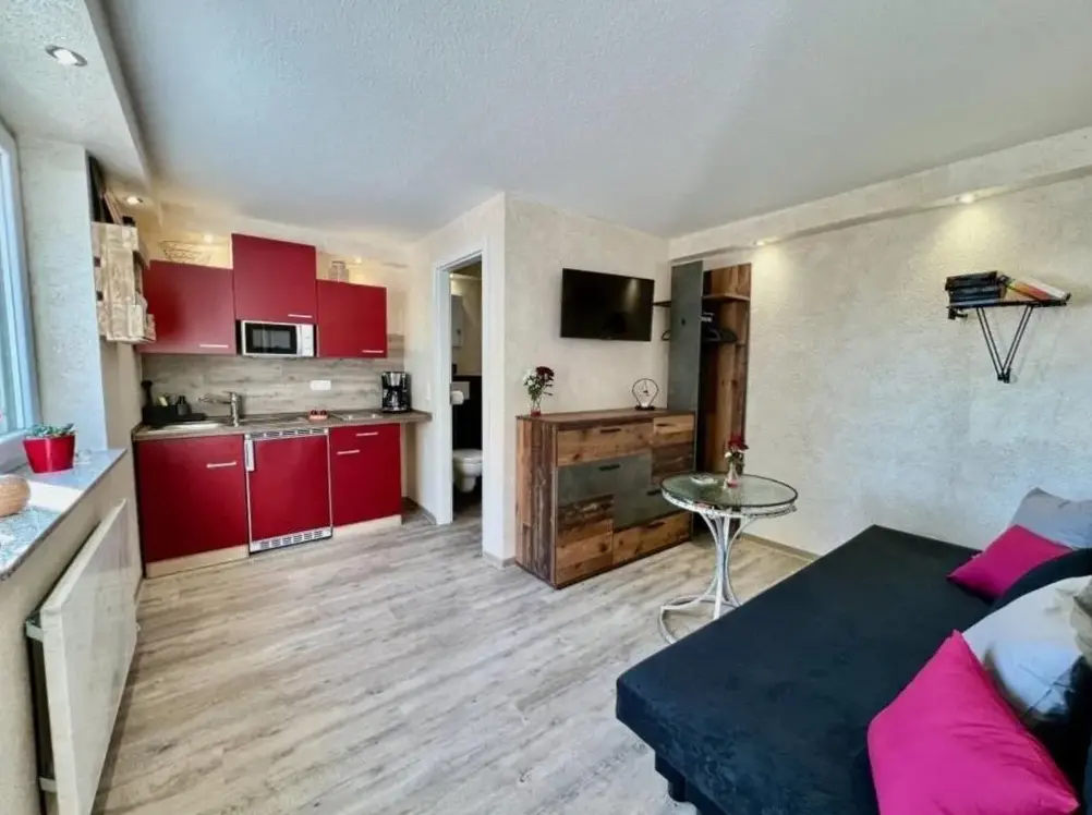 Mere information om Haus am SonnenhangRadlerEck i Wasungen er en komfortabel bolig, der tilbyder en rummelig lejlighed med stue og moderne faciliteter. Lejligheden inkluderer et ekstraordinært køkken, privat badeværelse og udendørs møbler, hvor man kan slappe af på sovesofaen eller nyde kaffe og tv. Der er gratis internet i offentlige områder, samt køleskab, mikrobølgeovn, komfur, brødrister, elektrisk kedel og bruser.