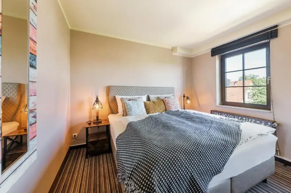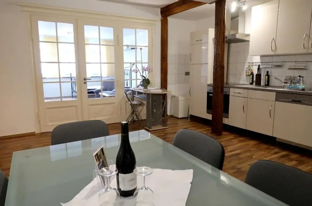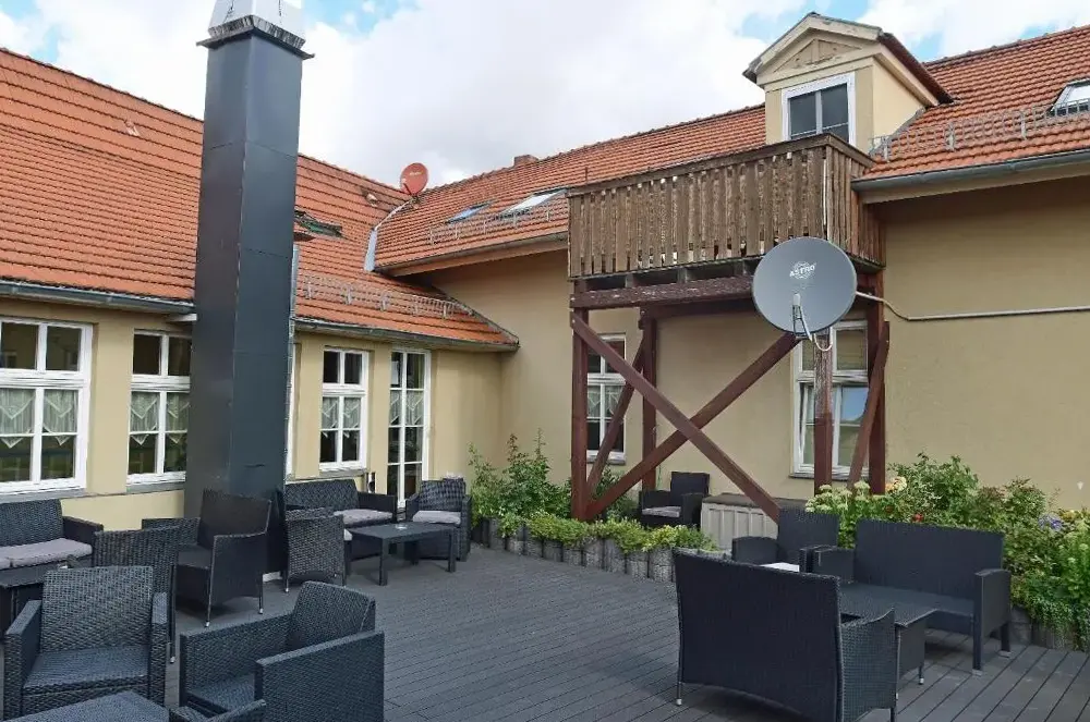 Weitere Informationen zu Hotel ProxHaus Zum Römer in Arnstadt bietet bequeme Unterkünfte mit moderner Ausstattung. Die Wohnung verfügt über ein eigenes Badezimmer, eine vollständig eingerichtete Küche mit Kaffeemaschine sowie einen Essbereich und einen Balkon mit Blick auf den Garten. Zu den praktischen Annehmlichkeiten gehören eine Waschmaschine, eine Spülmaschine und Parkettböden.