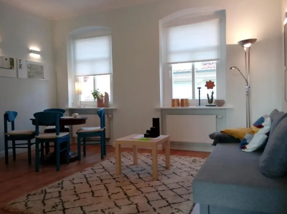 Weitere Informationen zu Ferienwohnung Linsenstrasse 13Die Pension Dorfliebe in Sondershausen ist eine familienfreundliche Unterkunft mit modern ausgestatteten Zimmern, die alle über einen Balkon, eine vollständige Küchenzeile sowie Kühlschrank, Fernseher und Garderobe verfügen. Die Zimmer sind mit Parkettböden, hypoallergener Bettwäsche und privaten Badezimmern versehen.