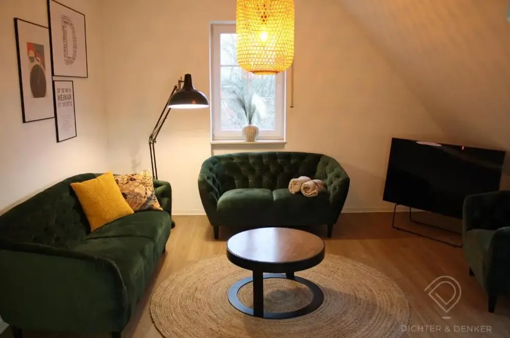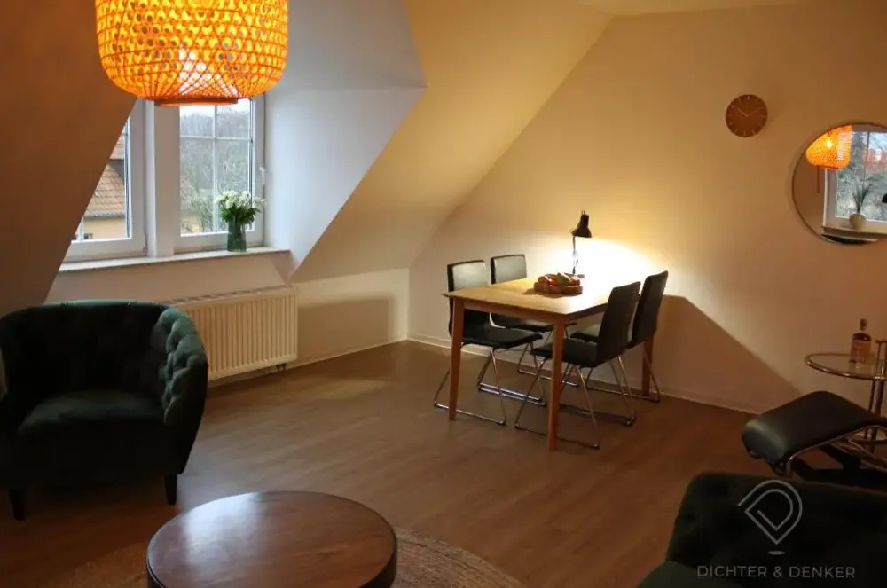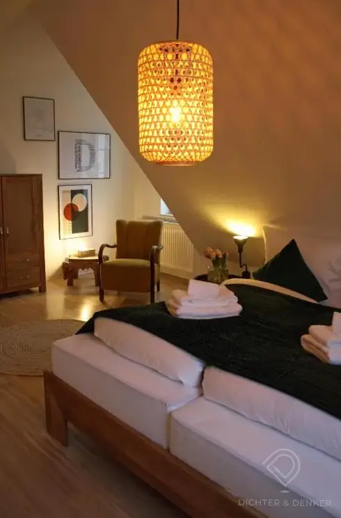 Weitere Informationen zu Dichter & DenkerDie AR Apartments am Standort Ackerstraße 7 in Rudolstadt bieten eine moderne Ferienwohnung für bis zu vier Personen. Die Einrichtung erfolgt liebevoll und funktional, sodass sich Gäste mit ausreichend Raum und einer vollständigen Ausstattung wohlfühlen können. Besonders hervorgehoben werden die hohe Sauberkeit sowie die hochwertige Qualität der Möbel, darunter besonders bequeme Bettunterlagen.