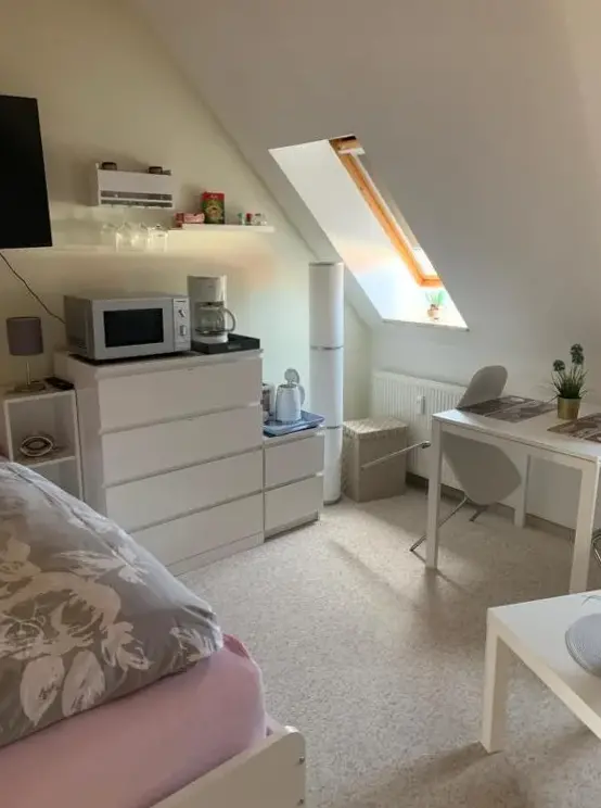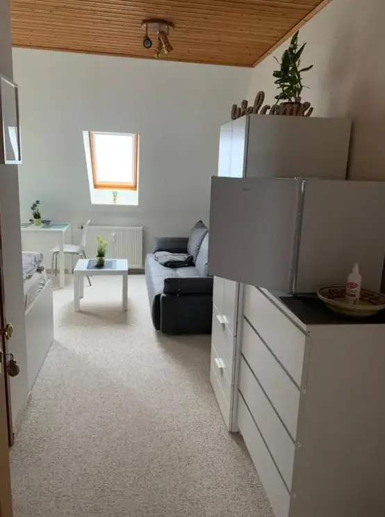 Weitere Informationen zu KommFerienwohnung an den Grundwiesen ist eine gut ausgestattete Unterkunft in Jena, ideal für Reisende, die Ruhe und Bequemlichkeit suchen. Die Wohnung besteht aus einem Schlafzimmer und einem Wohnzimmer sowie einer modernen Küche mit Küchenzeile, Waschmaschine und weiteren praktischen Geräten.