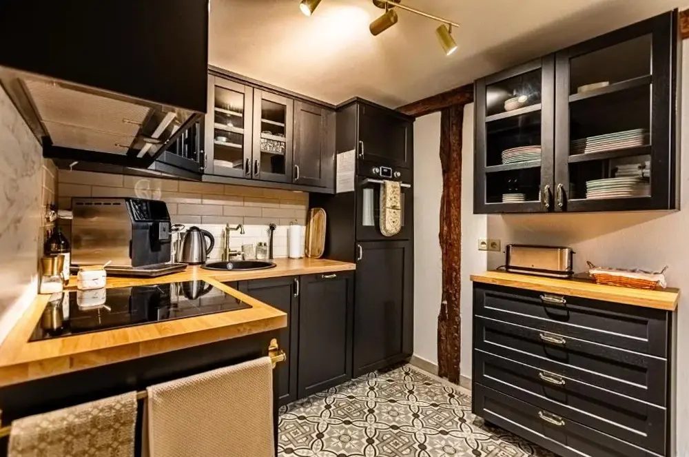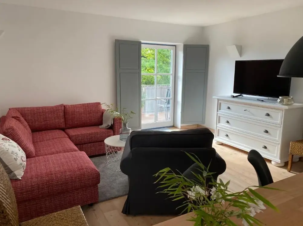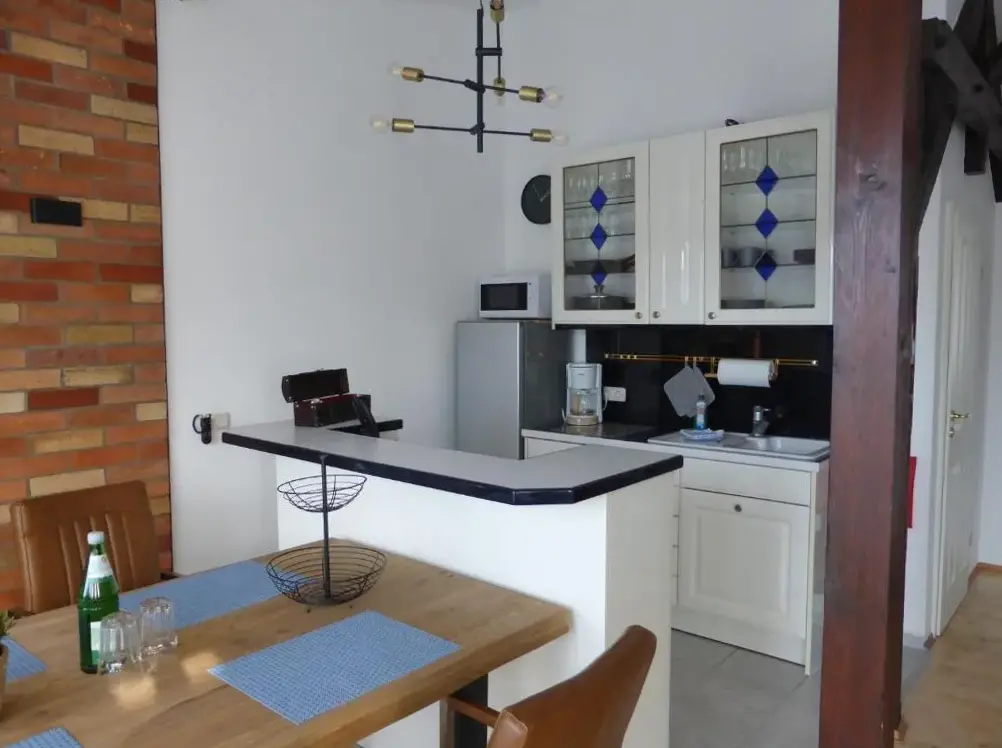 Weitere Informationen zu Appartement House JenaApartments Ilmtal-Jena bieten eine geräumige Wohnung in einem historischen Gebäude mit Blick auf den Berg und die Stadt sowie einem komfortablen Wohnzimmer. Die moderne Ausstattung umfasst kostenlose WLAN-Zugang, eine Küchenzeile und eine vollständig eingerichtete Küche mit Kaffeemaschine, Mikrowelle und Geschirrspüler. Zusätzlich gibt es ein Bad, einen Essbereich und einen Arbeitsplatz.