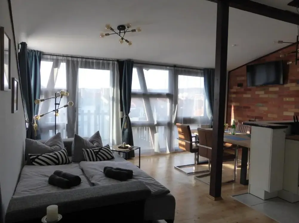 Weitere Informationen zu Home- Alt-WinzerlaDas 3-Raum-City-Appartement in zentraler Lage am Holzmarkt 12, direkt im Herzen von Jena, bietet eine moderne Unterkunft für bis zu vier Gäste. Die Wohnung überzeugt durch ihren geräumigen Grundriss und eine vollständige Ausstattung, die sowohl Alltagsbedürfnisse als auch längere Aufenthalte komfortabel gestaltet.