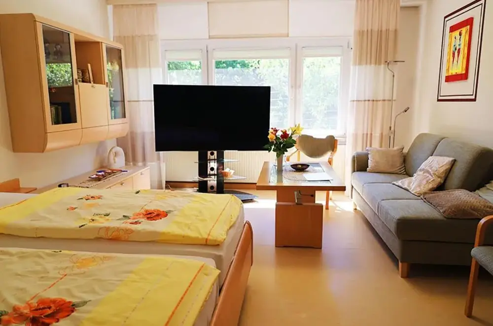 Weitere Informationen zu Artem OrbisDas 2-Raum City Appartement Jena bietet eine geräumige und moderne Wohnung in zentraler Lage von Jena. Die Wohnung verfügt über Parkettböden, eine voll ausgestattete Küche sowie ein bequemes Wohnzimmer mit Sofa-Bett. Gäste profitieren von kostenlosem WLAN, privaten Check-in- und Check-out-Diensten sowie einem bezahlten Flughafen-Shuttle-Service.