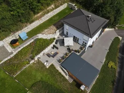 Más información sobre LifestyleSirisferienhaus es una casa de vacaciones de 4 estrellas situada en Stiller Berg 5, 98587 Kurort Steinbach-Hallenberg, Alemania. Ofrece dos habitaciones y una sala de estar ideal para familias. La propiedad dispone de habitaciones familiares, una terraza y un jardín donde los huéspedes pueden disfrutar de un ambiente relajante.