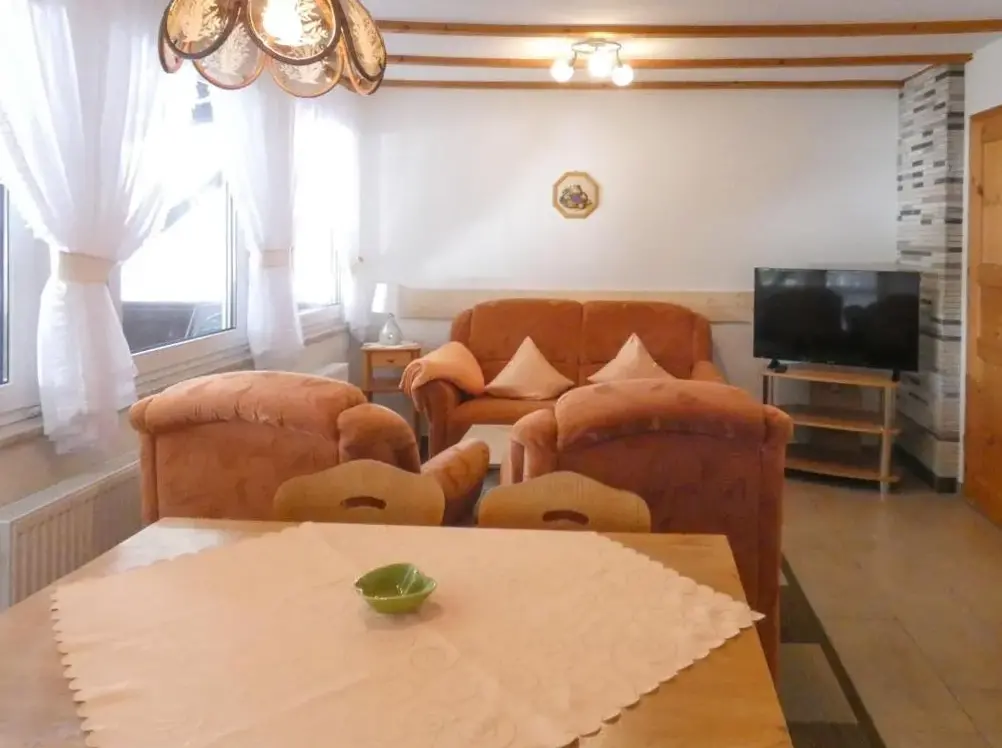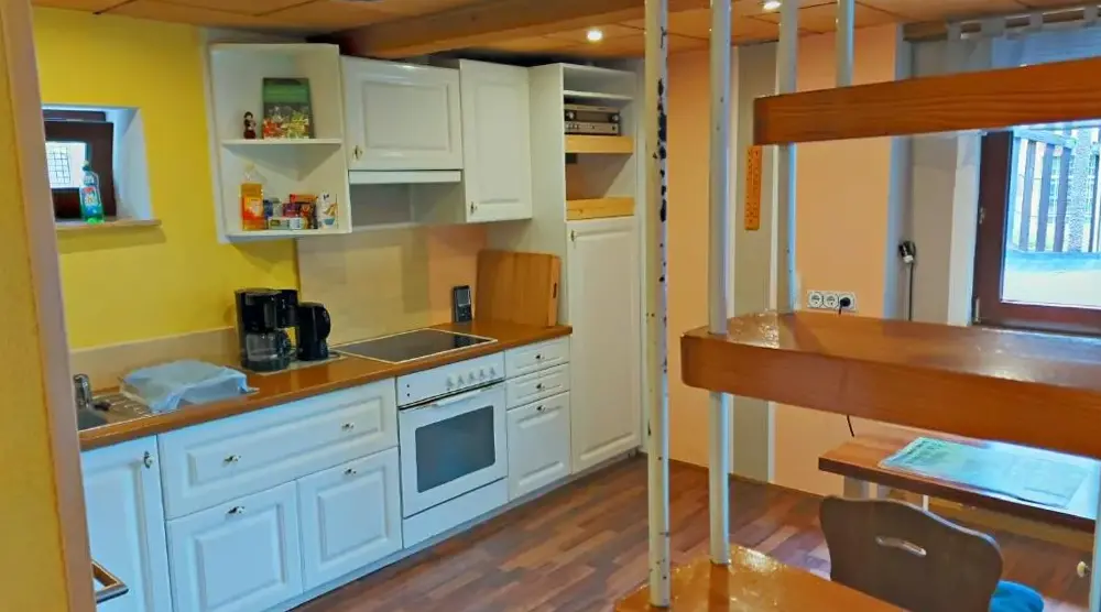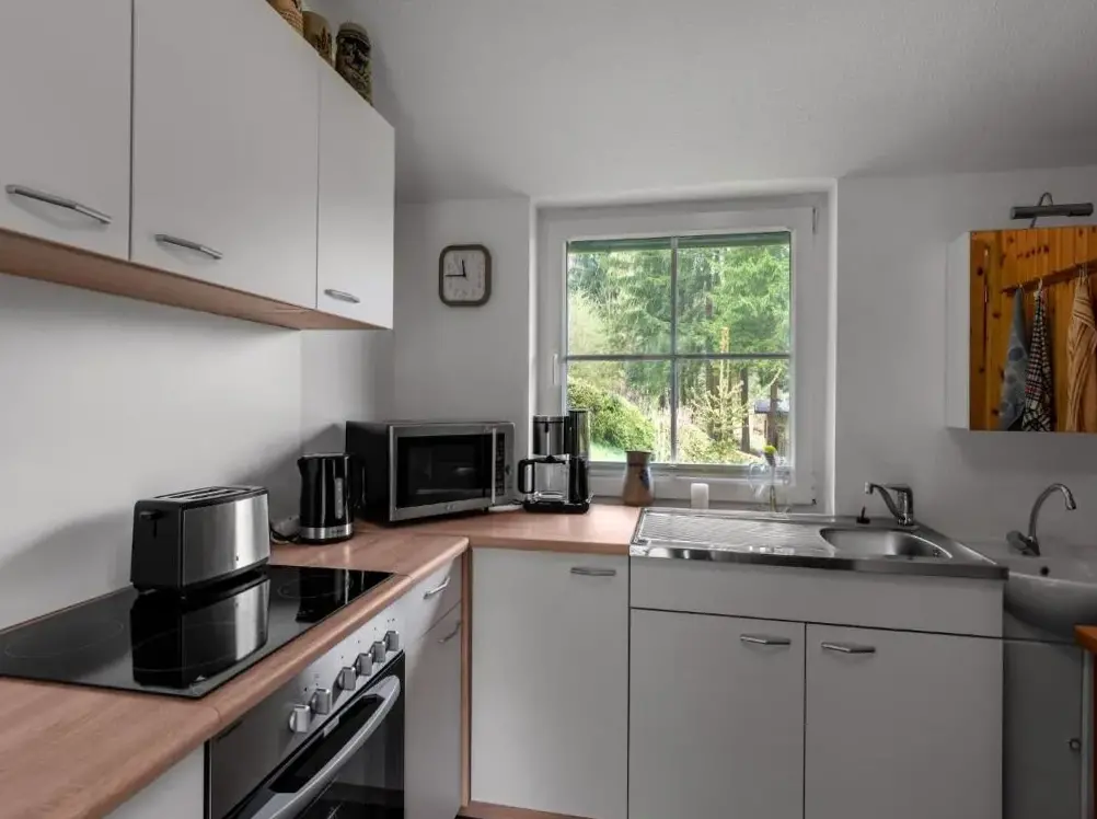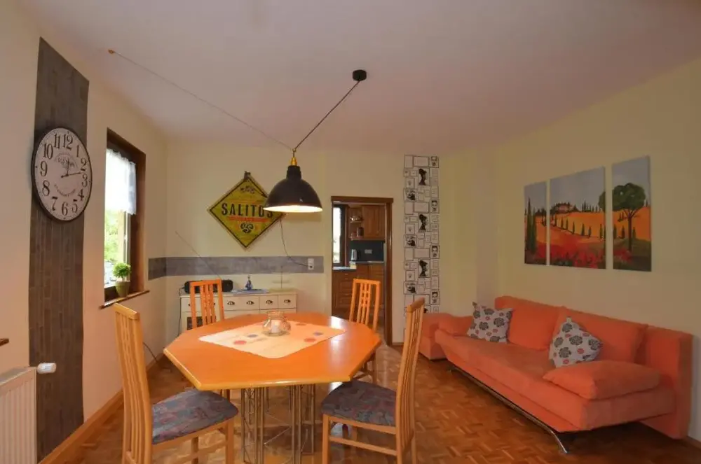 Más información sobre Bungalow Am SchlossäckerWohnung Steinbach nahe Skihalle Oberhof es un alojamiento amplio situado en Kurort Steinbach-Hallenberg, Alemania. Este apartamento ofrece dos dormitorios y un baño, ideal para grupos pequeños o familias. La cocina completamente equipada permite preparar comidas caseras, mientras que el comedor y el área de estar garantizan momentos relajados.