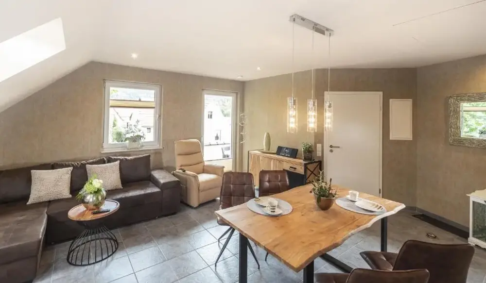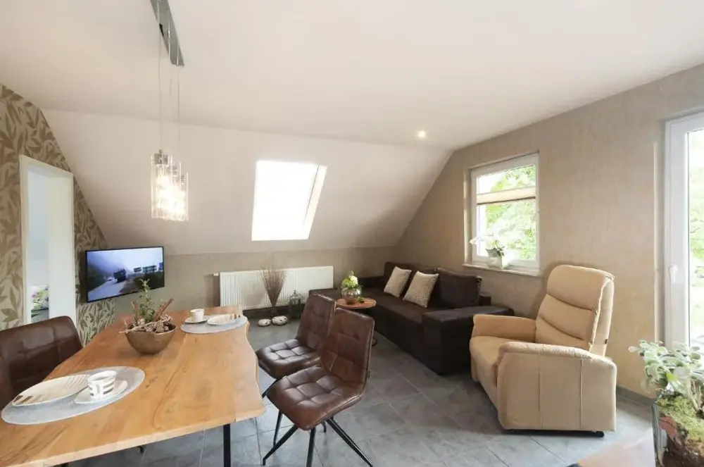 Más información sobre Home in Steinbach-HallenbergStaimicher Höhen - Premium Appartements ofrece alojamiento confortable en Steinbach-Hallenberg, ideal para visitantes que buscan comodidad y servicios completos. Cada apartamento cuenta con cocina, baño privado y balcón, además de comedor, sofá cama y tecnología moderna como WiFi gratuito y televisor. Destaca su acceso a áreas recreativas como terraza, jardín, bar y salón compartido.