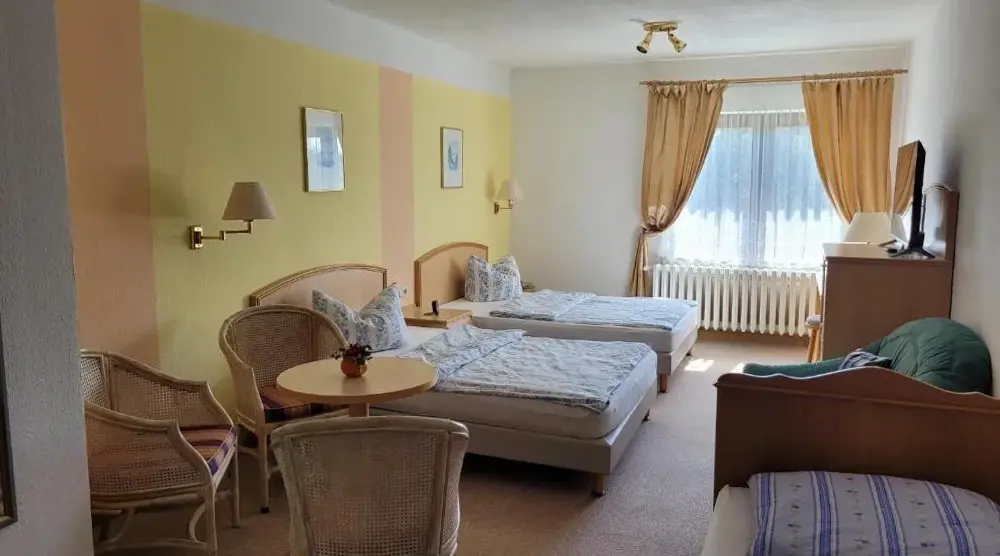 Más información sobre SirisferienhausAlojamientos cómodos: Waldpension Am Köpfchen en Steinbach-Hallenberg ofrece un jardín, terraza, restaurante, bar y wifi gratis. Los huéspedes disfrutan de vistas a la montaña, baños privados y comodidades, como un escritorio de trabajo y televisión. Experiencia gastronómica: el restaurante tradicional sirve cocina alemana para la cena.