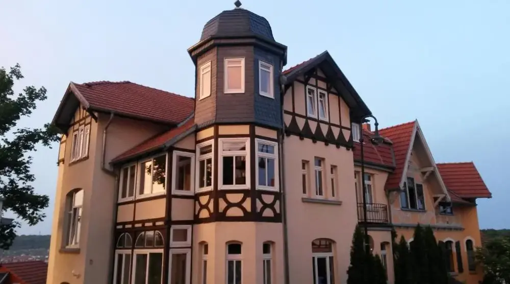 Ulteriori informazioni su Villa WeitblickAltstadt Suite a Weimar offre spazi ampi e confortevoli con tre camere da letto e due bagni. L'appartamento presenta un soggiorno completo con zona pranzo e salotto, dotato di tutti i comfort necessari per un soggiorno piacevole. Gli ospiti possono usufruire di connessione internet gratuita, una terrazza esterna e una cucina totalmente equipaggiata con macchina da caffè, lavastoviglie e forno.