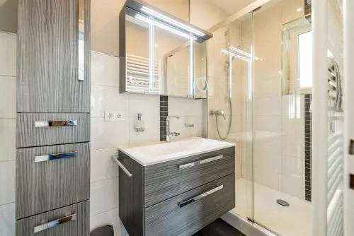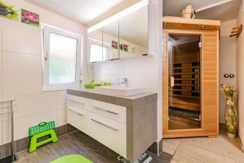 Ferienhaus Auszeit に関する追加情報Ferienapartment Zur guten QuelleはドイツのBad Liebensteinに位置し、2ベッドルームのアパートをご提供します。施設内には庭やサウナがあり、客室にはエアコン、キッチン、バス、ダイニングテーブルが完備されています。テレビや電動ケトル、無料のトイレタリーなどの現代的な設備が整っており、ゲストはサウナや屋外の座席エリアを利用できるほか、無料の専用駐車場と電気自動車充電ステーションを使用可能です。周辺にはブライトンゲン(werra)やエリザベスパークなどアクセスが簡単で、観光スポットとしても人気があります。