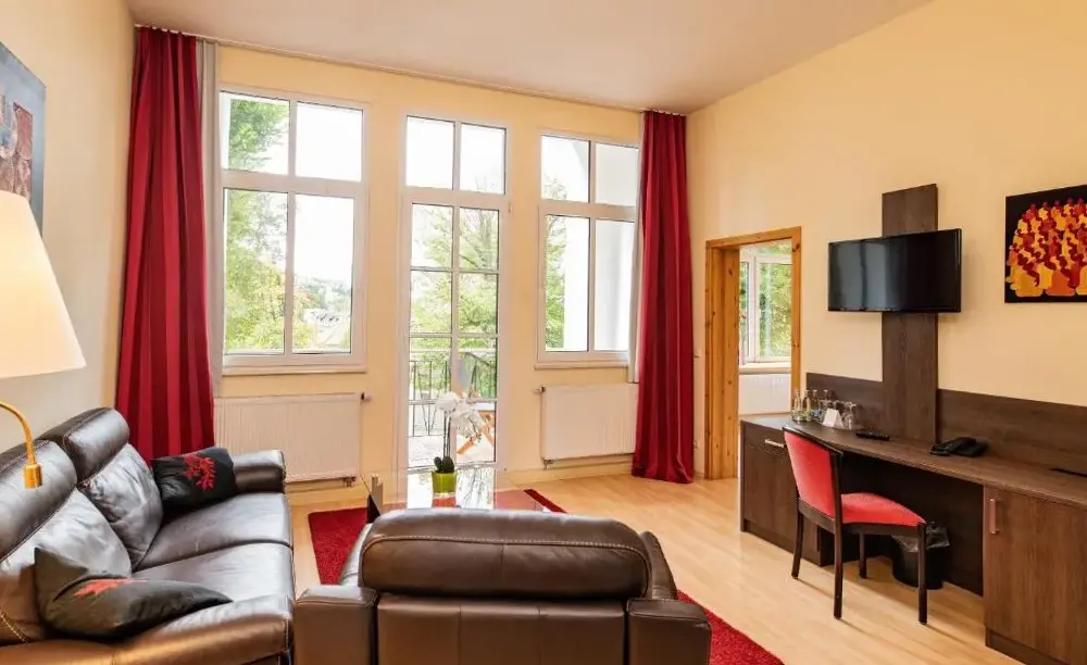 Finnhütte in Trusetal near Waterfall に関する追加情報Waldhotel Rennsteighofは、ドイツのBad Liebensteinに位置する高級な宿泊施設です。ホテルでは伝統的なドイツ料理および国際的な料理をご提供し、ゲストは落ち着いた空間での昼食・夕食・ハイティーを楽しめます。広々とした庭園とテラスが備わり、自然の中でリラックスできる環境となっています。各客室には山の眺望や作業デスク、シャワー、カーペット張りの床が完備されており、快適な滞在をサポートします。無料のwifiが全館で利用可能で、無料のコーヒーショップも併設されています。また、専用駐車場が無料でご利用いただけます。周辺にはウォーターバーグ城やルーザーハウスなど観光名所が多く、自然豊かな地域でのご滞在をお楽しみください。