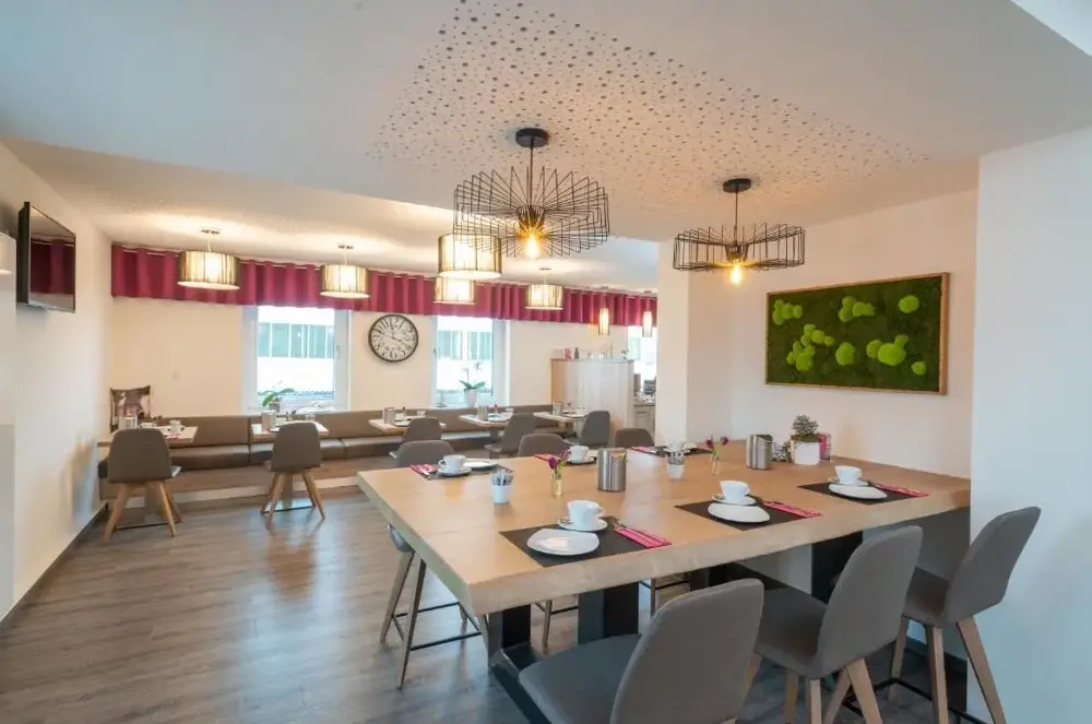Pension Hotel Leinefelde am Bahnhof に関する追加情報HotelDeutschesHaus Leinefeldeは、Leinefelde-Worbisにある歴史的な建物内に位置する宿泊施設です。タイル張りの床と小屋の床を持つ独特な空間が魅力で、ゲストに落ち着いた滞在体験を提供します。客室内には専用バスルーム、街並みや静かな通りからの眺め、作業デスク、座るスペースが備えられており、快適さを追求した設計となっています。追加の設備としてソファベッドやソファ、ワードローブが用意され、よりゆったりとした時間を過ごせます。ダイニングでは家族向けレストランがオープンしており、オーストリアおよびドイツ料理を取り扱い、ベジタリアン・ビーガン・グルテンフリー・乳製品不使用といった選択肢も豊富です。朝食には地元産の食材を使ったメニューが用意されており、質の高い食事を楽しむことができます。施設内にはバーがあり、コーヒーにも対応し、無料Wi-Fiをご利用いただけます。