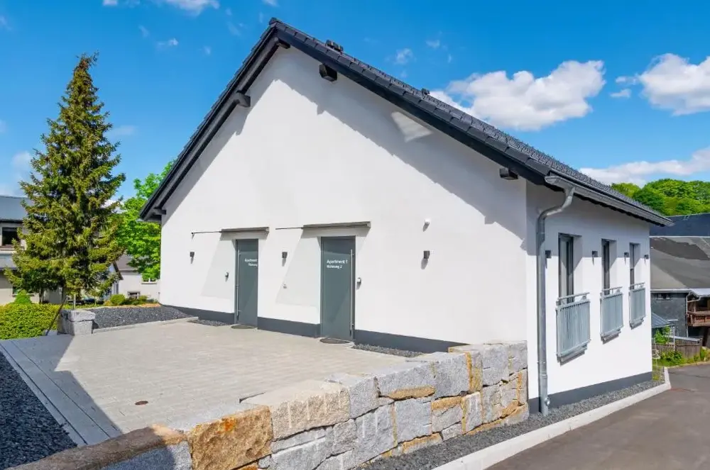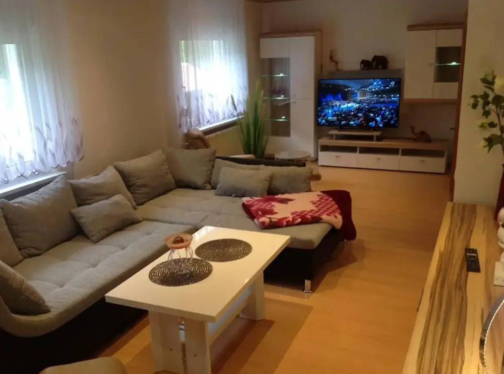 Meer informatie over FeWo KönigFerienhaus am Löffelberghüttchen biedt een ruim appartement met twee slaapkamern en een badkamer, ideaal voor gezinnen of groepen die comfort en ruimte zoeken. Het appartement heeft moderne voorzieningen zoals een volledig uitgeraste keuken, wasmachine en vaatwasser, terwijl er ook een bureau, tv en parketvloeren aanwezig zijn.
