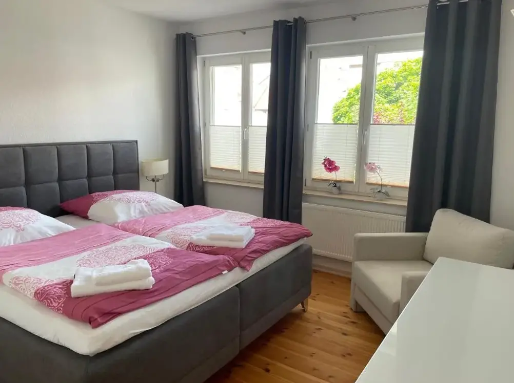 Meer informatie over Ferienwohnung Am WäldchenPension Schul Inn in Ruhla biedt familiekamers met eigen badkamers, uitgerust met moderne faciliteiten zoals gratis wifi, streamingdiensten en een bureau. De kamers zijn voorzien van een thee- en koffiezetapparaat, inloopdouche en gratis toiletries. Gasten kunnen gebruik maken van de herstelde tuin en genieten van het rustige uitzicht op straat.