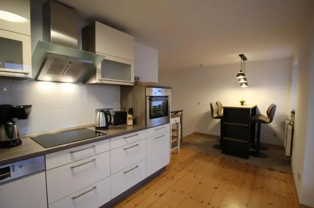 Meer informatie over Ferienwohnung Karl KuntzeApartment 1 in Schmiedefeld biedt een smaakvol en functioneel verblijf voor wie op zoek is naar comfort en ruimte met alle basisbehoeften aan boord. De moderne keuken is uitgerust met een vaatwasser, oven, kookplaat en koelkast, zodat zelf koken geen probleem vormt.