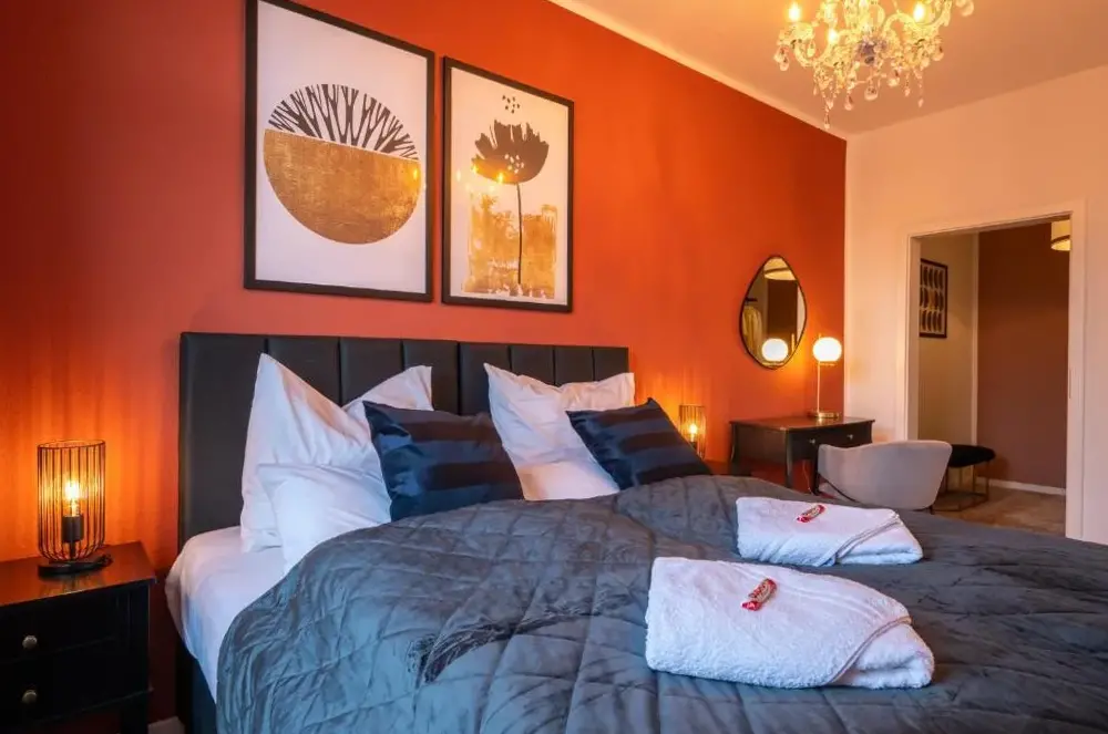 Meer informatie over Ferienwohnung SchlossblickJena The Grand Piano Suite biedt een comfortabel appartement in het centrum van Jena, gesitueerd in een historisch pand. Het appartement heeft twee slaapkamers, een woonkamer en een balkon met uitzicht op de stad.