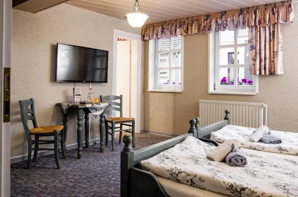 Meer informatie over Landhaus Am WesterwaldPension Zur Krone in Martinfeld biedt familiekamers met eigen badkamers en uitzicht op de tuin of zwembad. De kamers zijn uitgerust met garderobe, tv en gratis toiletartikelen. Gasten kunnen gebruik maken van een zwembad met uitzicht, zonnebrand en een weelderige tuin. Het pand heeft ook een tennisbaan, buitenspelruimtes en gratis internetverbinding.