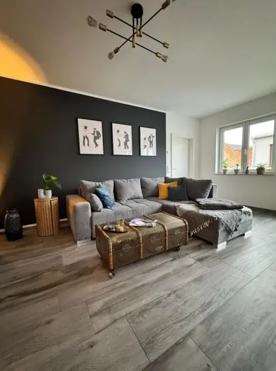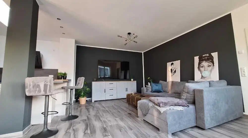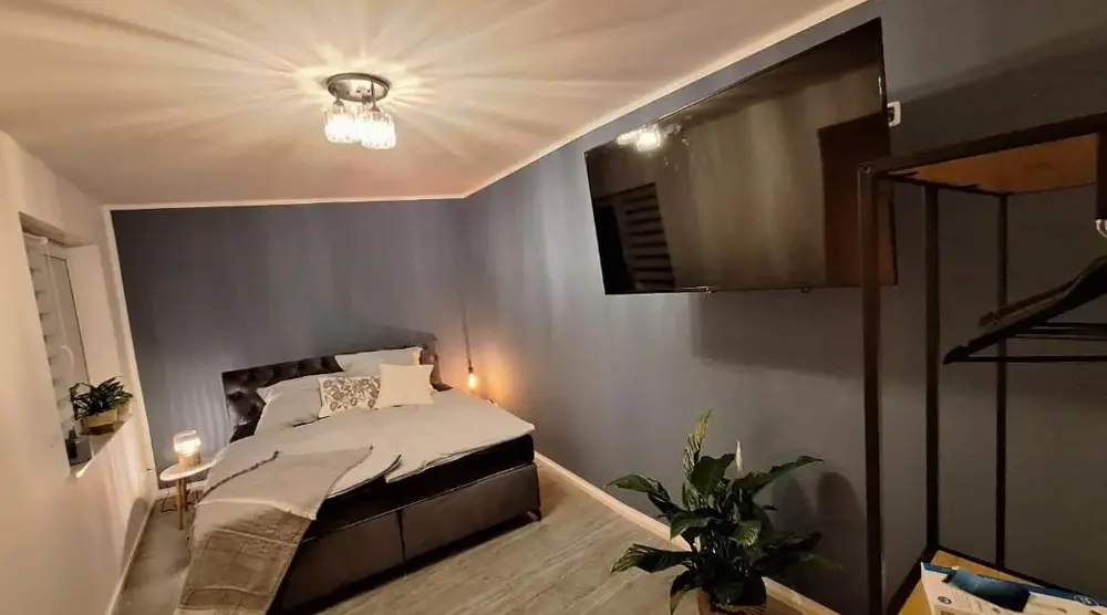 Ferienwohnung Erfurter Seen - Nöda biedt een ruim appartement met twee slaapkamers en een woonkamer, ideaal voor comfortabele accommodatie. Het appartement heeft een moderne keuken met koelkast, oven, fornuis, vaatwasser en koffiezetapparaat. Daarnaast zijn er een balkon, bad, bankbed, tv en tegelvloeren beschikbaar.