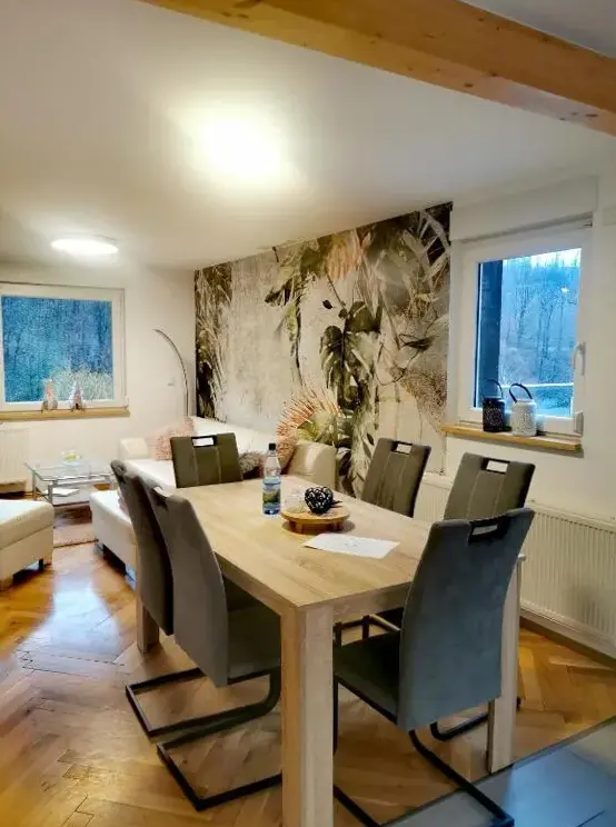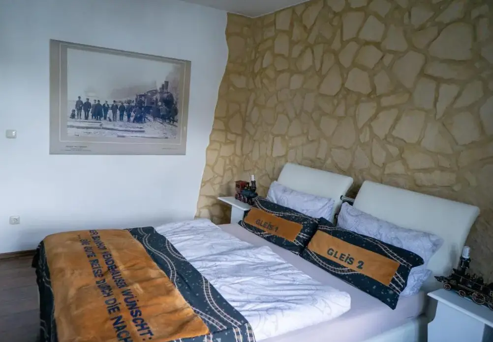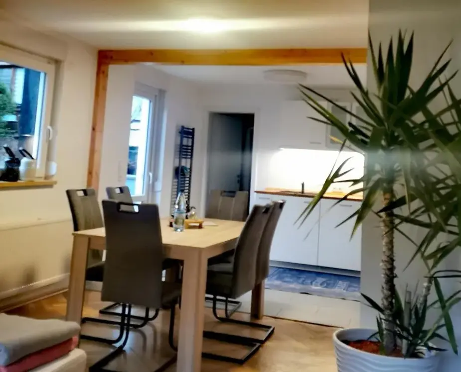 Meer informatie over Ferienwohnung Bahnhof WendehausenFerienhaus am Wald is een comfortabel vakantiehuis gelegen in Wendehausen, dat beschikt over drie slaapkamers en een woonkamer. Het huis biedt een volledig uitgeruste keuken, een balkon met uitzicht op de tuin en een terras. Gasten kunnen gebruik maken van een ruime tuin en terras voor ontspanning.