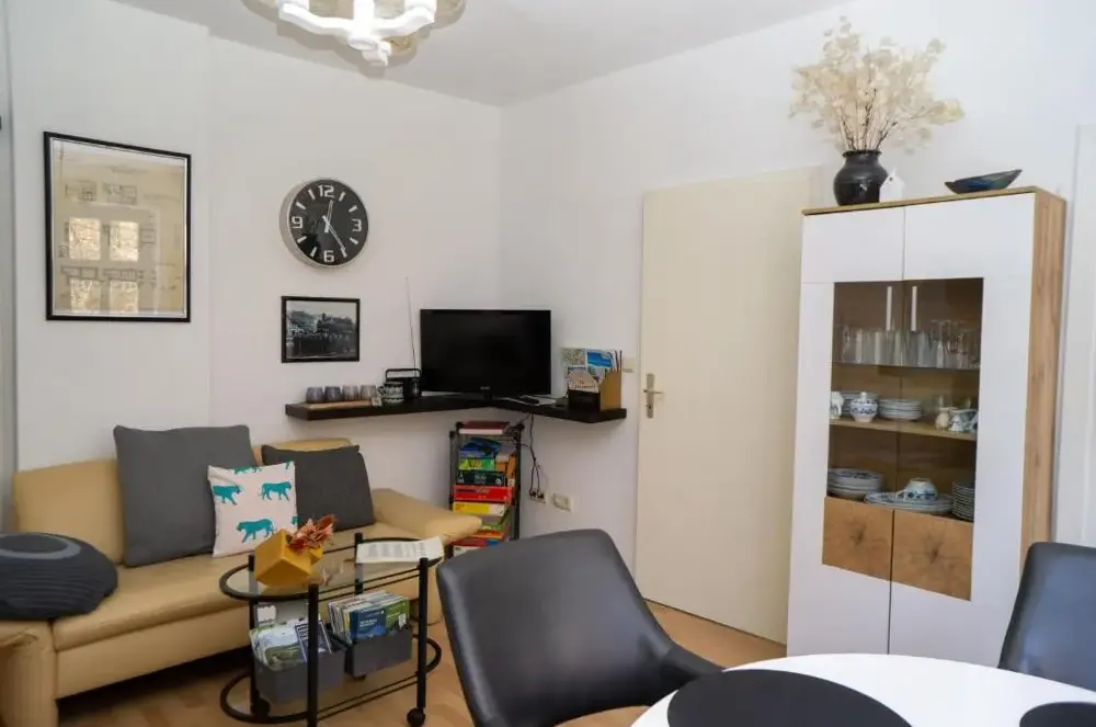 Ferienwohnung Bahnhof Wendehausen biedt een comfortabel appartement met twee slaapkamern, een tuin en gratis wifi. Het appartement heeft een kitchenette, keuken en eetkamer. Gasten kunnen gebruik maken van moderne apparaten zoals een thee- en koffiezetapparaat, magnetron, vaatwasser en tv. Extra faciliteiten omvatten een slaapbank, koelkast en parketvloeren.