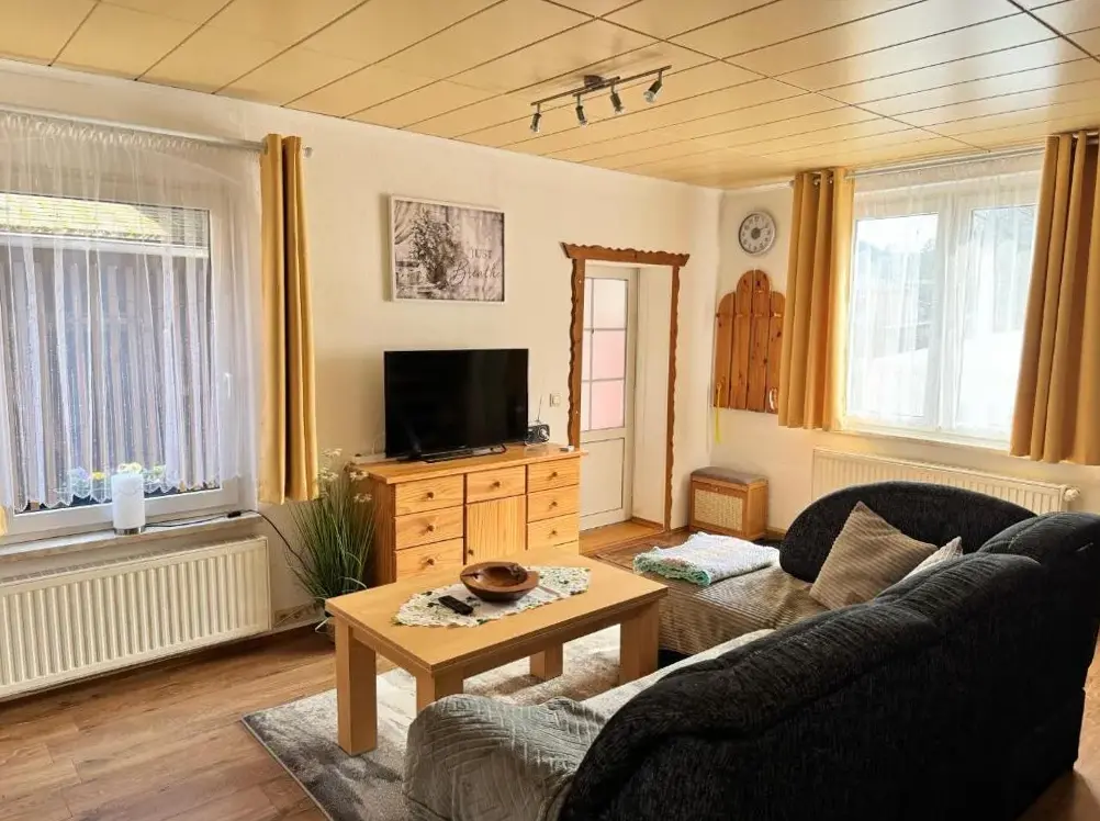 Więcej informacji o Landhaus zum Sieben-Täler-BlickFerienwohnung Neubert to nowoczesna przestrzeń mieszkaniowa w Leutenberg, oferująca jedno pokój z salonem oraz taras i ogród. Mieszkanie配备齐全的厨房和餐厅,以及户外烧烤设施。Wspólne zakwaterowanie umożliwia korzystanie z darmowego internetu oraz parkingu. Lokalizacja pozwala na szybki dostęp do miejsc turystycznych, w tym parki narodowe i jeziora Hohenwarte.