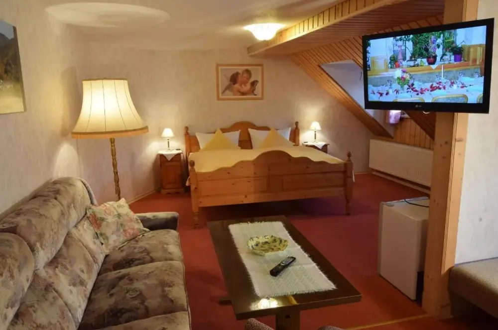 Więcej informacji o Hotel & Gasthof GarkücheFeWo Steineck leutenberg oferuje przestrzenny apartament z jednym pokojem spa i salonem. Mieszkanie jest dobrze wyposażone w nowoczesną kuchnię z lodówką, mikrofalówką, suszarką do naczyń, piekarnikiem oraz kuchenką gazową. Goście mogą korzystać z pralki i telewizora. W pobliżu znajduje się ogrodowe miejsce do odpoczynku.