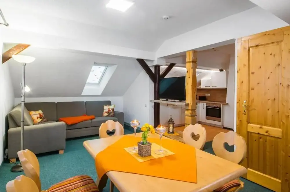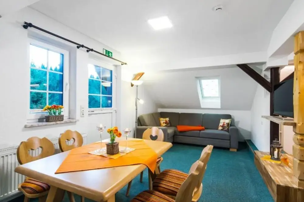 Więcej informacji o Fewo Hoher SteinFewo Ruppberg to wygoda i funkcjonalność w połączeniu z komfortem. Mieszkanie oferuje dwie sypialnie oraz przestronny salon, idealny dla gości szukających miejsca na odpoczynek. Kuchnia jest wyposażona w maszynę do kawy, lodówkę, kuchenkę mikrofalową, zmywarkę, piekarnik, kuchenkę, toster i czajnik elektryczny. Udogodnienia obejmują bezpłatne Wi-Fi, balkon oraz prywatny parking.