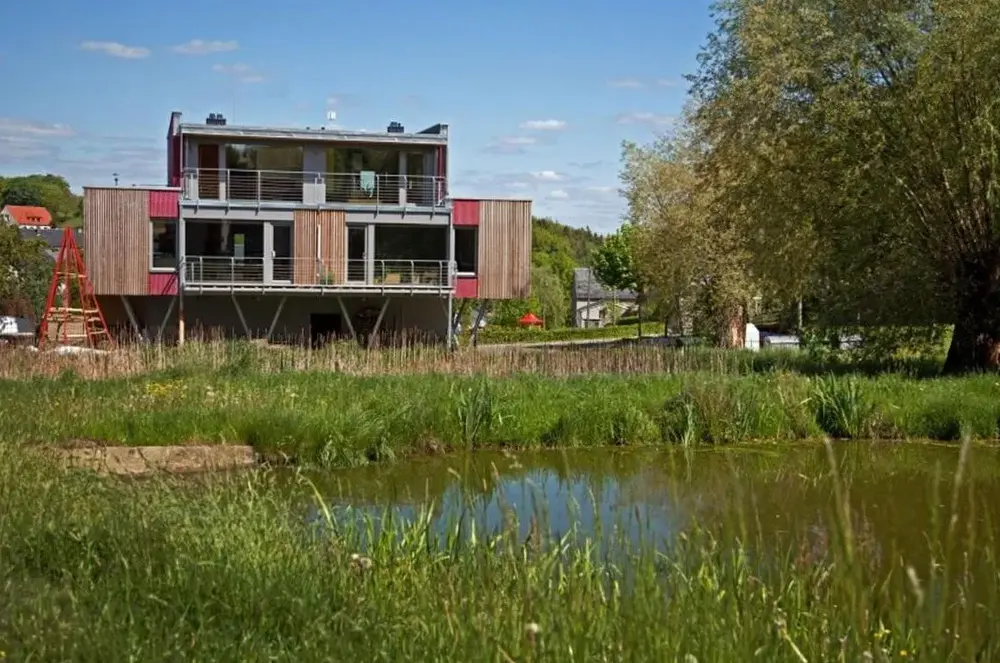 SELBSTgemacht em Zeulenroda oferece acomodações confortáveis com quartos familiares equipados com banheiros privativos, varandas e cozinhas. Os espaços incluem televisão, guarda-roupa e produtos de higiene gratuitos. Hóspedes podem aproveitar áreas externas como terraço solar e jardim, além de lareira ao ar livre, área de piquenique e instalações para churrasco.