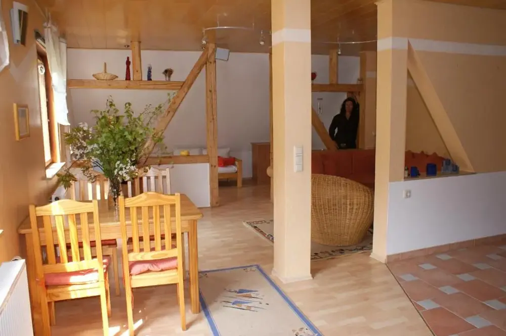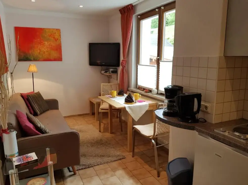 O Im alten Kino em Masserberg/Fehrenbach é um apartamento situado em um edifício histórico recentemente renovado, combinando charme do passado com confortos modernos. Oferece uma cozinha compacta totalmente equipada, área de jantar e sala de estar com piso de madeira. Possui terraço solar e estacionamento privativo gratuito.