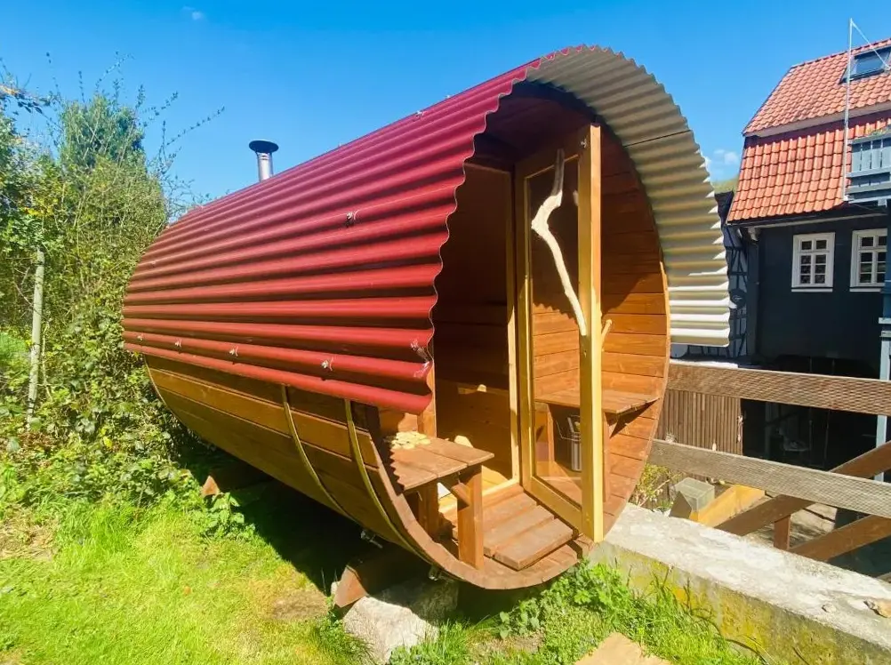 Mais Informações sobre Fewo Heinrichser Markt - 2 Schlafzimmer mit Sauna und TerrasseO Pulverhütte Gästehaus im egaPark está localizado na tranquila Gothaer Straße, 99094 Erfurt, oferecendo um refúgio acolhedor dentro de um ambiente verde e relaxante, ideal para quem busca fugir da agitação urbana sem abrir mão dos confortos modernos.
