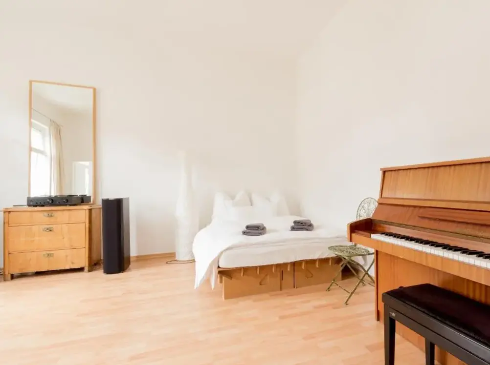Mais Informações sobre Tiny Erfurt AlkovenbettO Badehaus Villa Fiedrichs é um apartamento situado em Waldstraße 6, Ilmenau, na Alemanha. Oferece um ambiente acolhedor com um quarto, cozinha totalmente equipada, área de jantar e sofá confortável. A unidade conta com televisão de tela plana, internet wi-fi gratuita, mesa de trabalho e utensílios para preparar refeições.