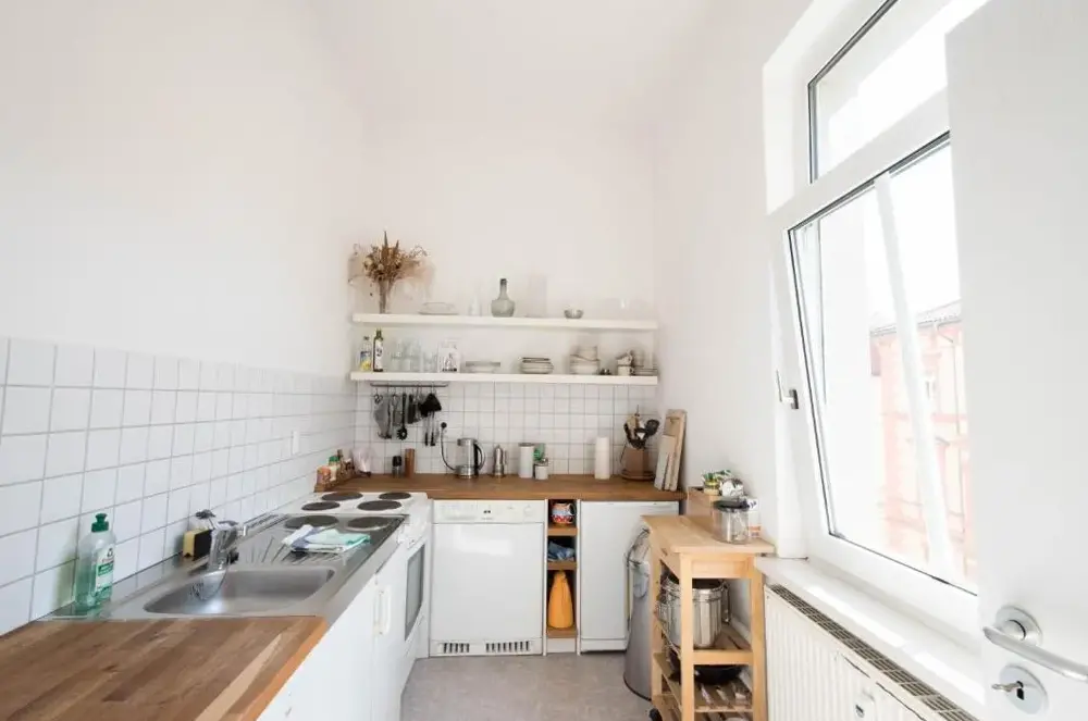 Mais Informações sobre Eisenach - ApartmentsO Tiny Erfurt Alkovenbett é um apartamento no térreo situado na Nordhäuser Straße 98, 99089 Erfurt, Alemanha. O imóvel conta com um quarto e um banheiro, além de uma cozinha compacta equipada com geladeira, fogão, chaleira elétrica e utensílios de cozinha. Espaços como a mesa de jantar e a área de estar são ideais para momentos de lazer.