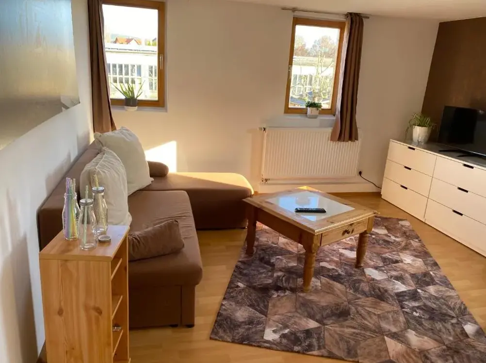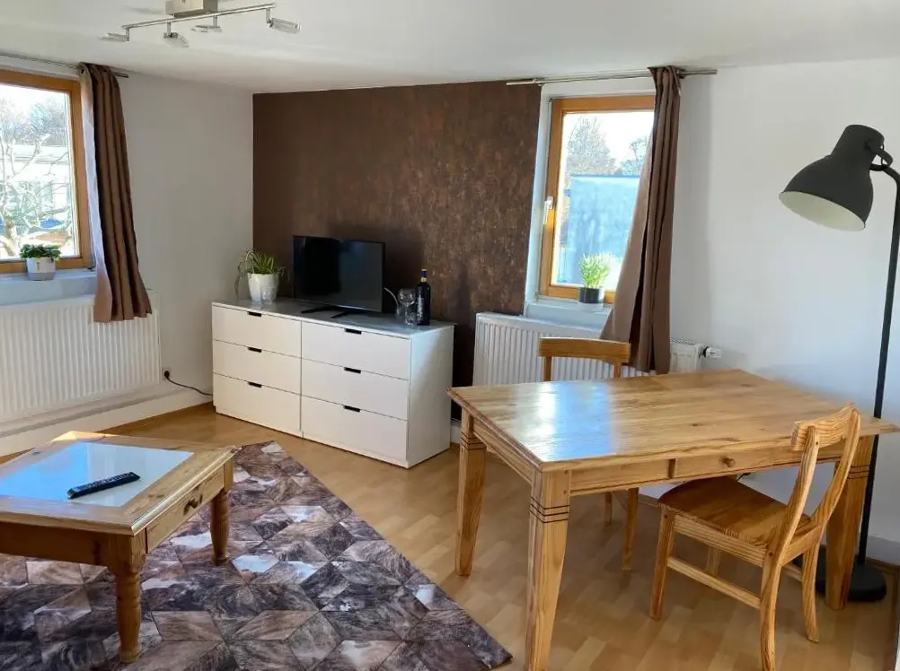 Mais Informações sobre Ferienwohnung sentio-comfortable SaalfeldFerienwohnung Lahann é um apartamento espaçoso situado na Rua Fingerstein, 34, em Saalfeld, Alemanha. O espaço conta com um ambiente acolhedor, composto por uma sala de estar confortável, uma cozinha totalmente equipada e um quarto com banheiro privativo. Os hóspedes podem aproveitar vistas para o jardim, além de uma mesa de jantar e um sofá-cama.