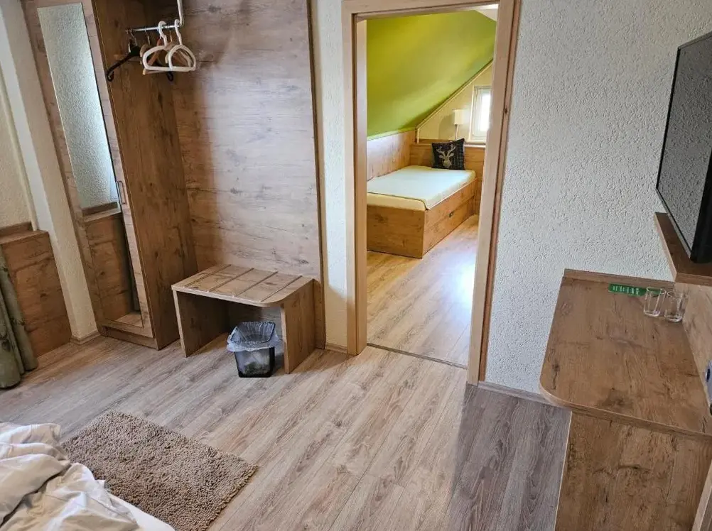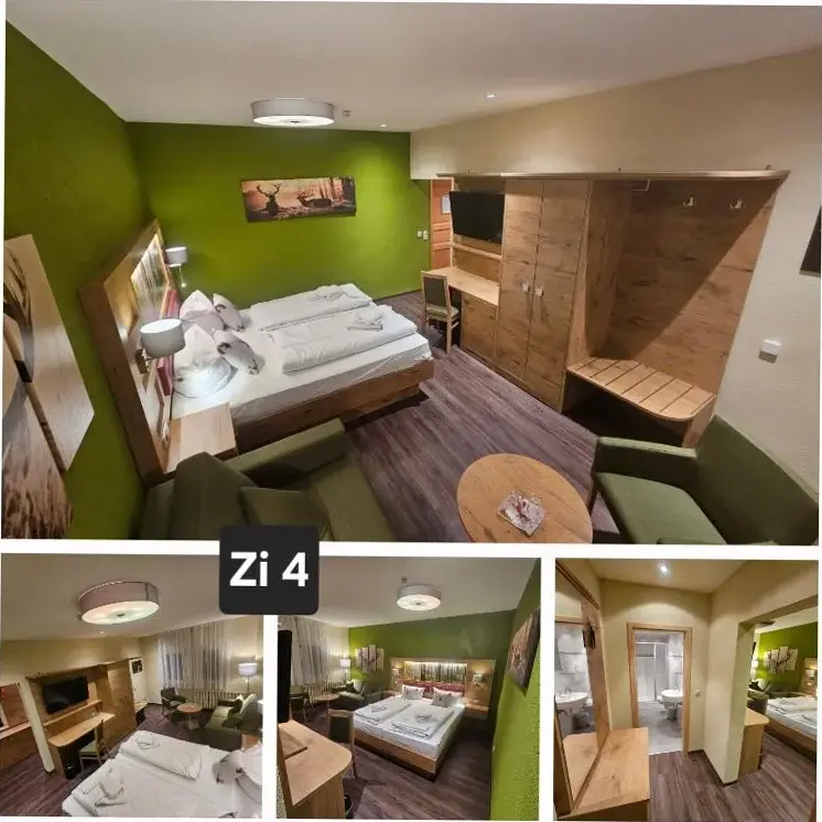 Mais Informações sobre Zum Roten Hirsch im Grünen WaldO Hotel & Restaurant Bergfried em Saalfeld é um destino acolhedor que combina conforto e conveniência. Oferece quartos familiares equipados com banheiros privativos, internet wireless gratuita e vista para as montanhas. Cada suíte conta com mesa de trabalho, televisão e armário.