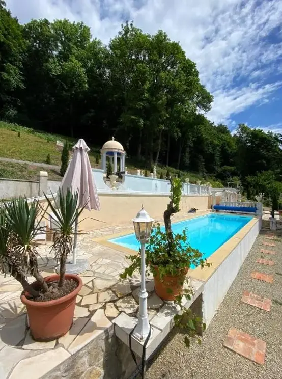 Mais Informações sobre Le petit Charme - Wohnen in einer historischen VillaWohlfühloase em Suhl oferece um apartamento espaçoso com um quarto e sala de estar, ideal para quem busca conforto e espaço. A unidade está situada em um terreno privado com pisos de azulejos e conta com áreas externas como terraço e jardim, além de uma piscina privada.